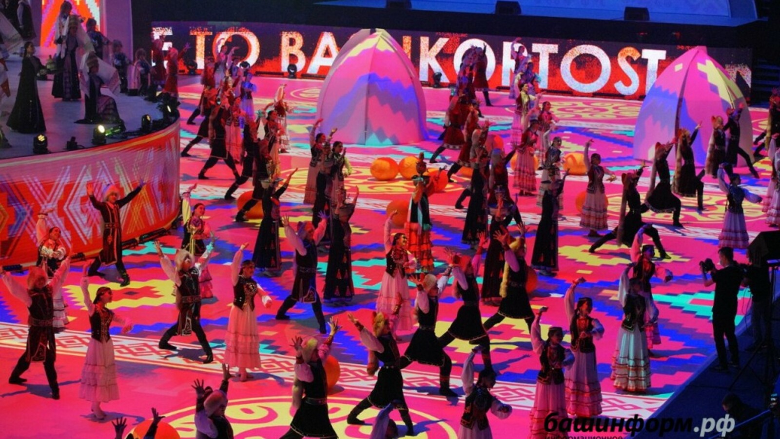 В Башкортостане стартовала VI Всемирная фольклориада CIOFF®. Торжественная церемония открытия состоялась 3 июля в Ледовом Дворце Уфа-Арена. Представители разных стран и этносов — участники крупного международного события вошли в ледовый дворец по красной ковровой дорожке. Внутри их встречала зажигательная башкирская музыка в исполнении Национального оркестра народных инструментов.