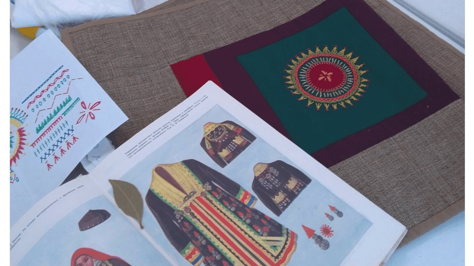 16:00 Вышивка кускарных мотивов тамбурными швами.