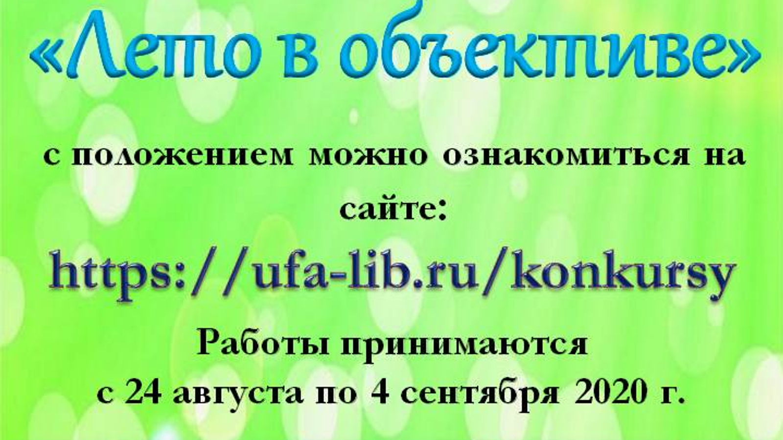 cgb@ufa-lib.ru с указанием в теме письма: Фотоконкурс «Лето в объективе».