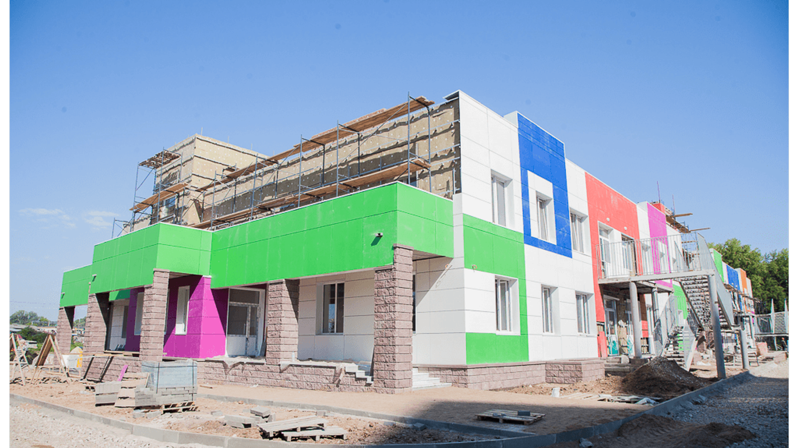 Строительство детского сада было запущено в августе 2019 года. Строителями выполнена большая часть работ. Так, на сегодняшний день завершается отделка фасада здания. Ведется внутренняя отделка, прокладывают инженерные сети. Общая площадь здания около трех тысяч квадратных метров. Новое дошкольное учреждение будет рассчитано на 8 групп.