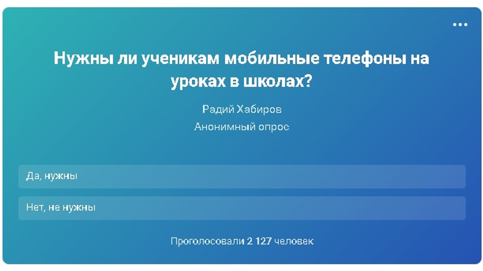 Сегодня, 27 февраля, Радий Хабиров запустил опрос в социальных сетях. Руководитель региона предложил принять решение об использовании телефонов в школах.