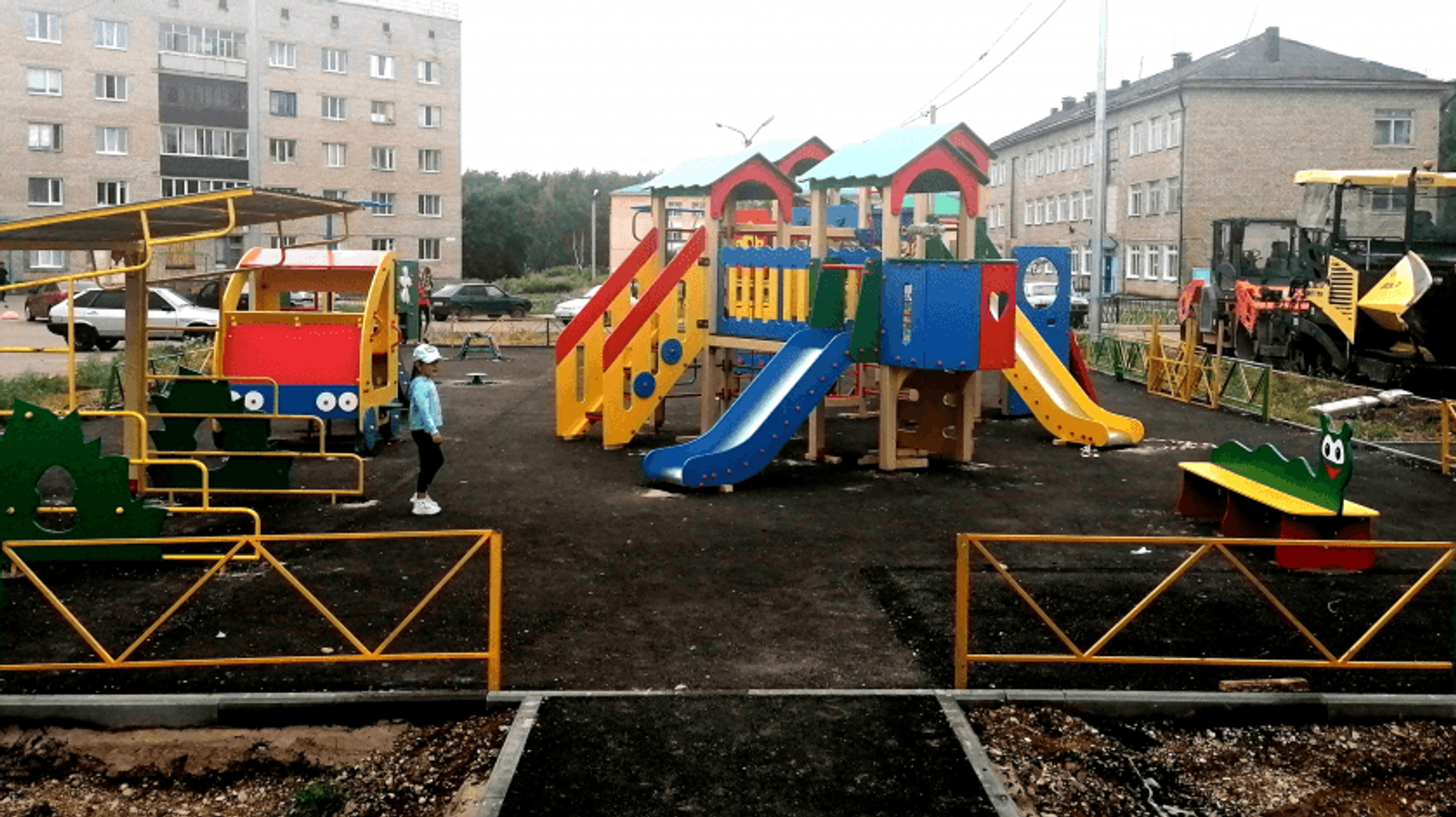 Продолжаются работы по асфальтированию проездов, стоянок, монтажу элементов площадок. Остались работы по монтажу травмобезопасного покрытия и озеленению. Надо отметить, что травмобезопасное покрытие большинства детских и спортивных площадок произведено на территории Туймазинского муниципального района предприятием ООО «Стройгол».