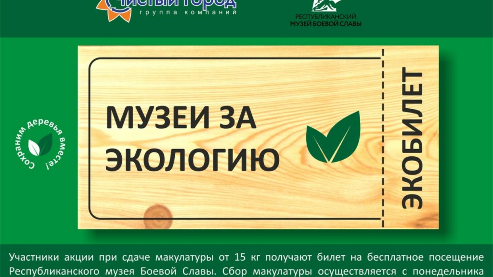 Так, в рамках проекта каждый желающий может принести в музей от 15 кг макулатуры и получить билет на бесплатное посещение Республиканского музея Боевой Славы.