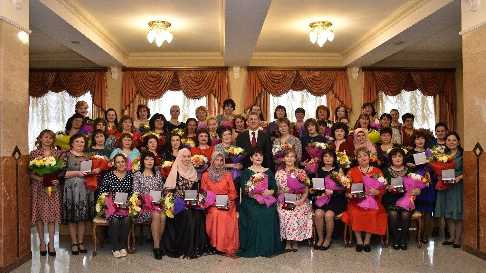 В Башкортостане в преддверии Международного женского дня еще 50 многодетных женщин получили медали «Материнская слава». В числе награждённых – учителя, медсёстры, воспитатели, повара и домохозяйки. Все они воспитывают пятерых и более детей. Медали вручал глава региона Радий Хабиров.