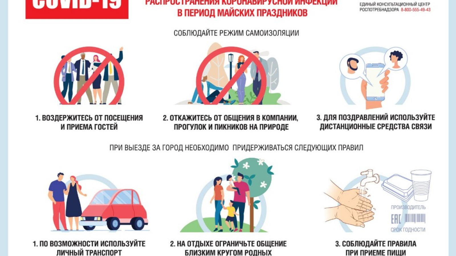 Роспотребнадзор в преддверии майских праздников выпустил рекомендации для граждан по профилактике КОВИД-19.
