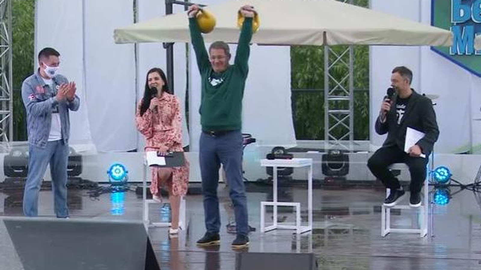 Глава Башкортостана Радий Хабиров во время праздничного фестиваля «Мы вместе», посвящённого Дню молодёжи, 27 июня легко поднял две 16-килограммовые гири, тем самым показал пример силы молодым людям.