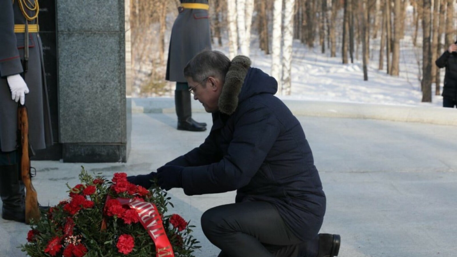 Глава Башкортостана сегодня почтил память жителей республики, исполнявших служебный долг за пределами Отечества и возложил цветы к мемориалу «Скорбящая мать» на улице Комарова в Уфе.