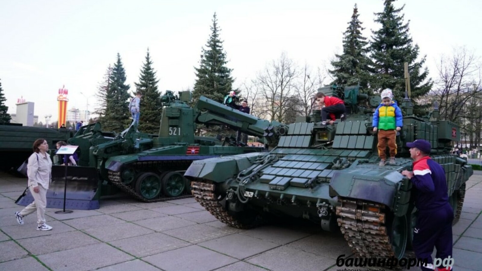 В преддверии Дня Победы в Уфе заработала тематическая выставка под открытым небом. Главные ее экспонаты — военная техника времен Великой Отечественной войны 1941-1945 годов из Музея техники Вадима Задорожного (г. Красногорск). К показу также привлечены образцы современной военной техники, стоящей на вооружении Российской Армии. Всего около 50 единиц военной техники.Сегодня же, 8 мая, с 19 до 22 часов на площади им.Ленина пройдет праздничный концерт с участим группы «Любэ».