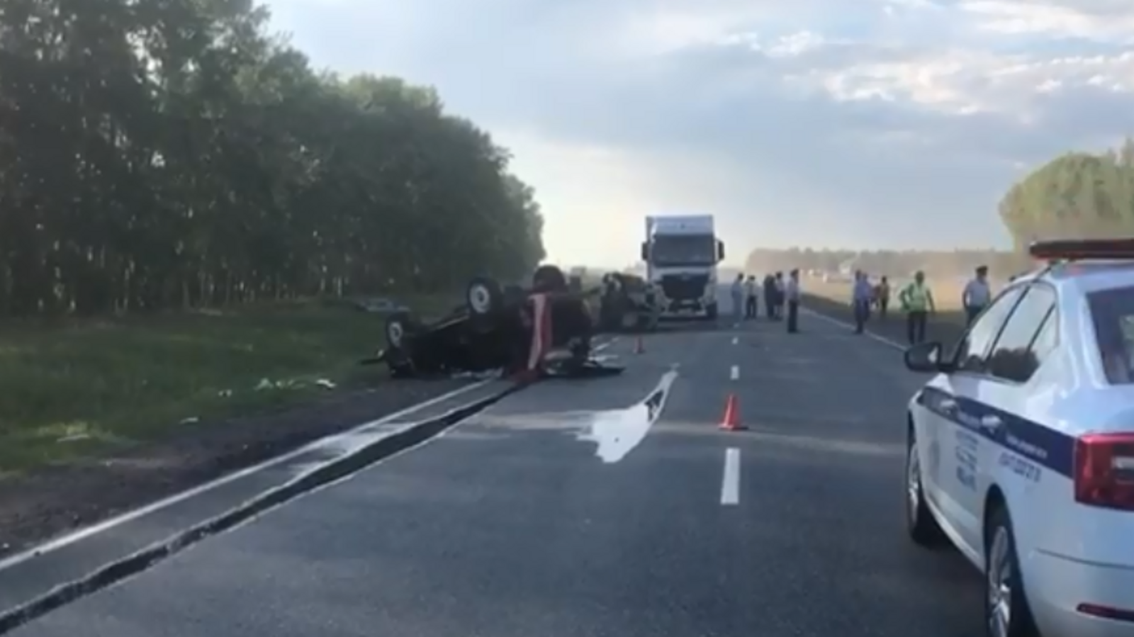 В результате произошло опрокидывание автомобиля «Лада Ларгус» и его столкновение с другими автомобилями, после чего он загорелся. Шестеро находившихся в автомобиле пассажиров скончались.